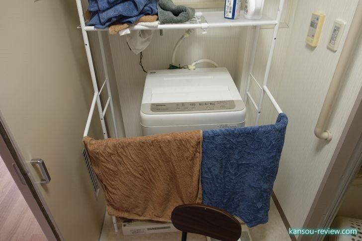 洗濯機置き場は画像のように左右も上もなにも収納スペースがありませんでした。洗剤やタオルなどを取りやすい場所に置かないと毎日が不便で仕方がありません。